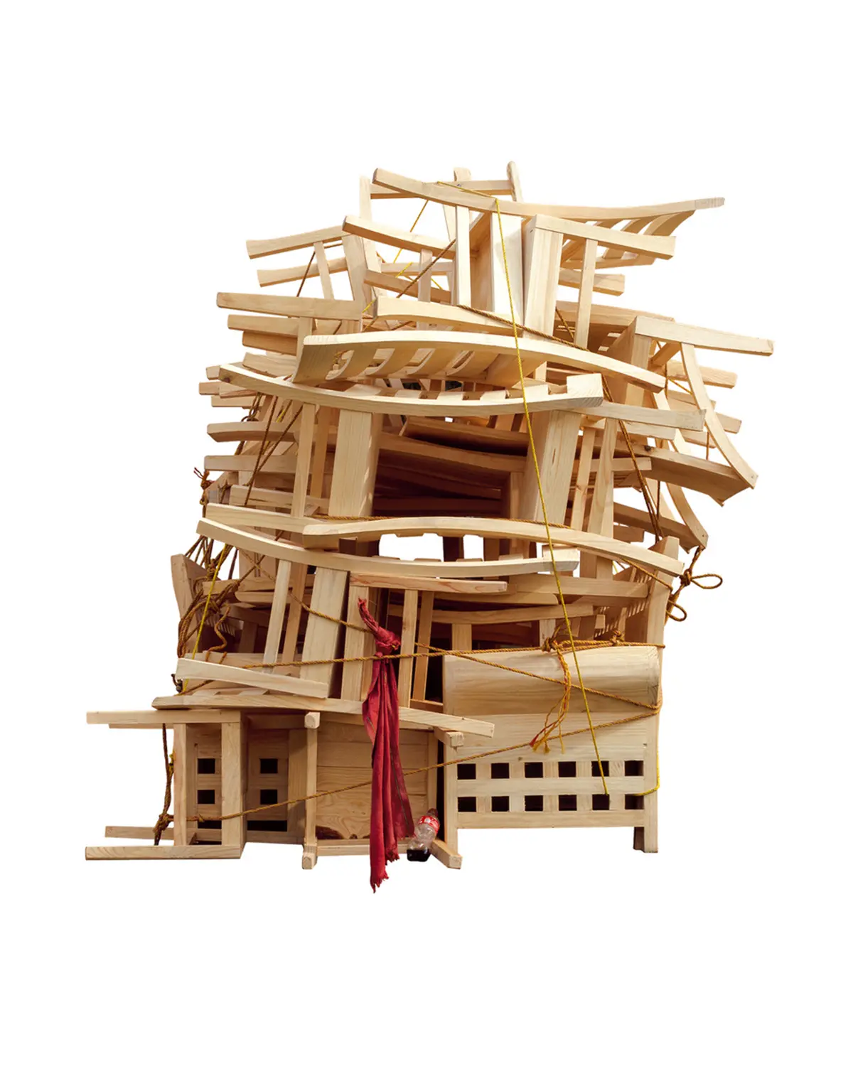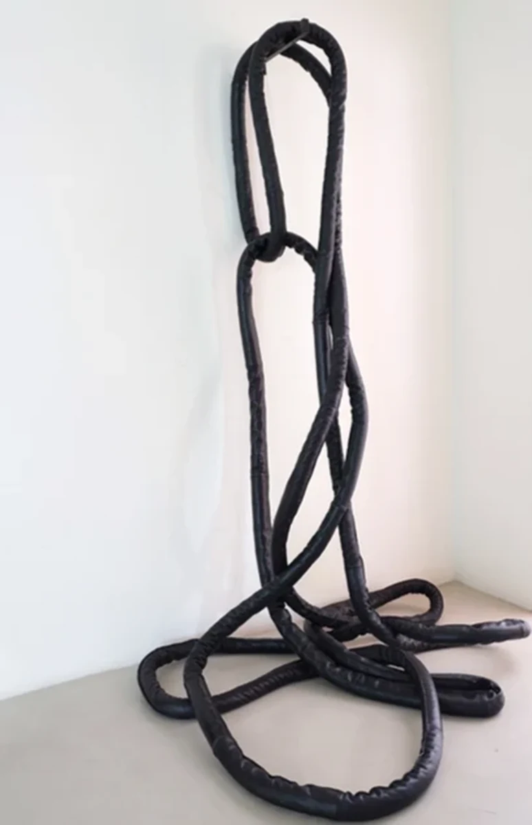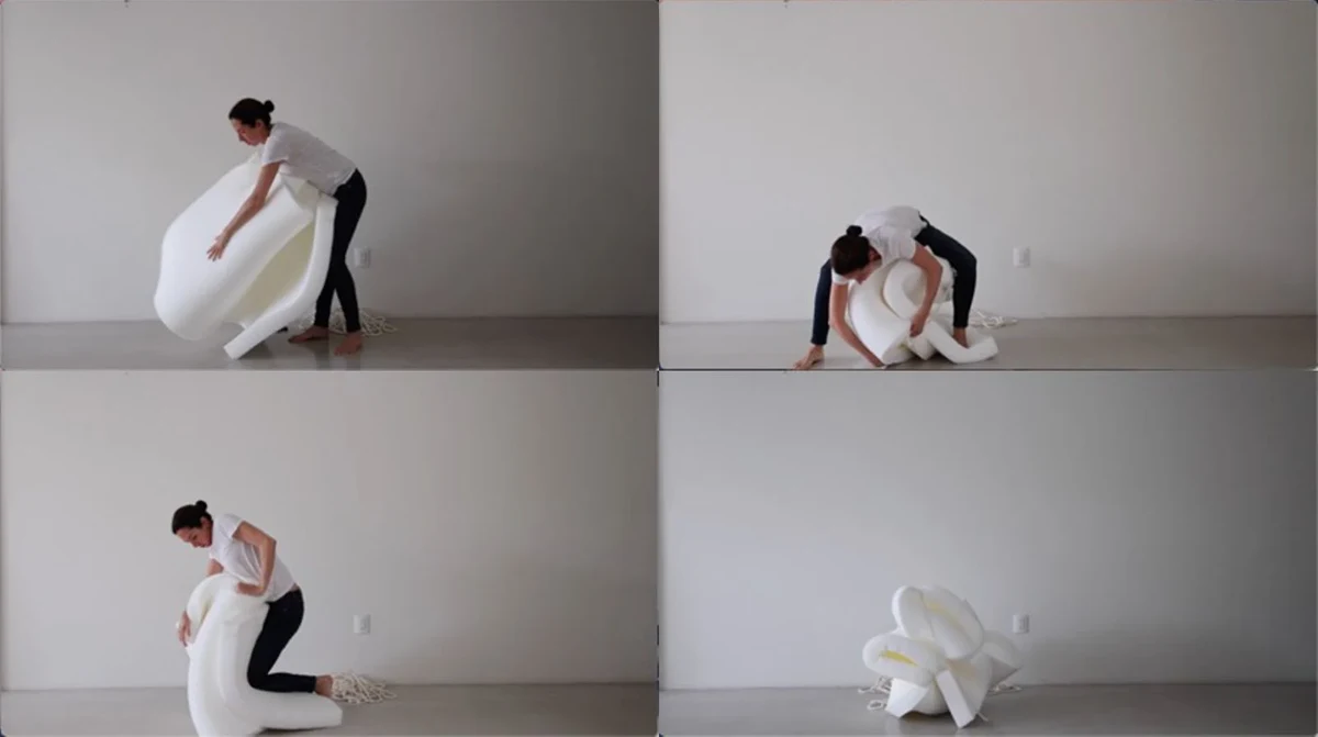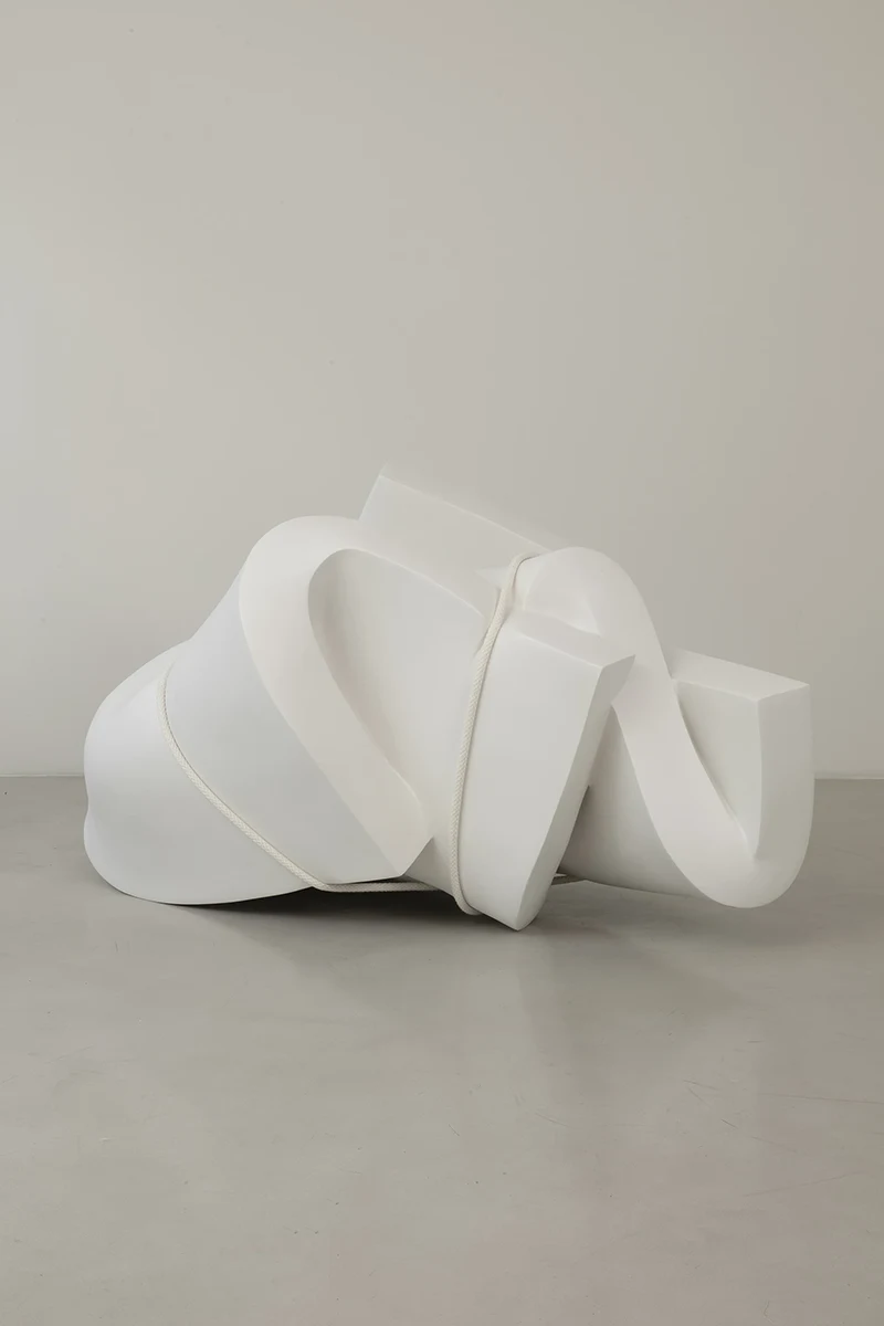 Entanglement is about the act of making art and confronting yourself in the process; about wrestling with one’s own inner demons, in art and in life. The series (2022-2023) comprises a video piece and a series of sculptures made of rubber foam, rope, fiber glass and resin. The sculptures are a direct reference to John Chamberlain’s Foam Sculptures, made in the 1960’s and among his lesser known bodies of work. Like Chamberlain, Laviada has a strong interest in creating sculptures using everyday objects and discarded materials, but for Laviada, these works are not only about form and materiality, but also about the act and process of creating them. In the video piece, titled ‘Wrestling with my demons’, the artist is seen ‘wrestling’ with a life-size foam mattress, trying to tame and give form to this supple, everyday object using only her body and a rope. At times she succeeds, others she fails, until eventually creating a sculpture made from bending, folding, tying and sculpting the material with her body weight and a rope. The process becomes like a performance, and we act as voyeurs into the intimate and often physical aspect of making art. Laviada is wrestling with the illusion and impossibility of control, using a material that will go back to its natural form the moment the rope is undone.