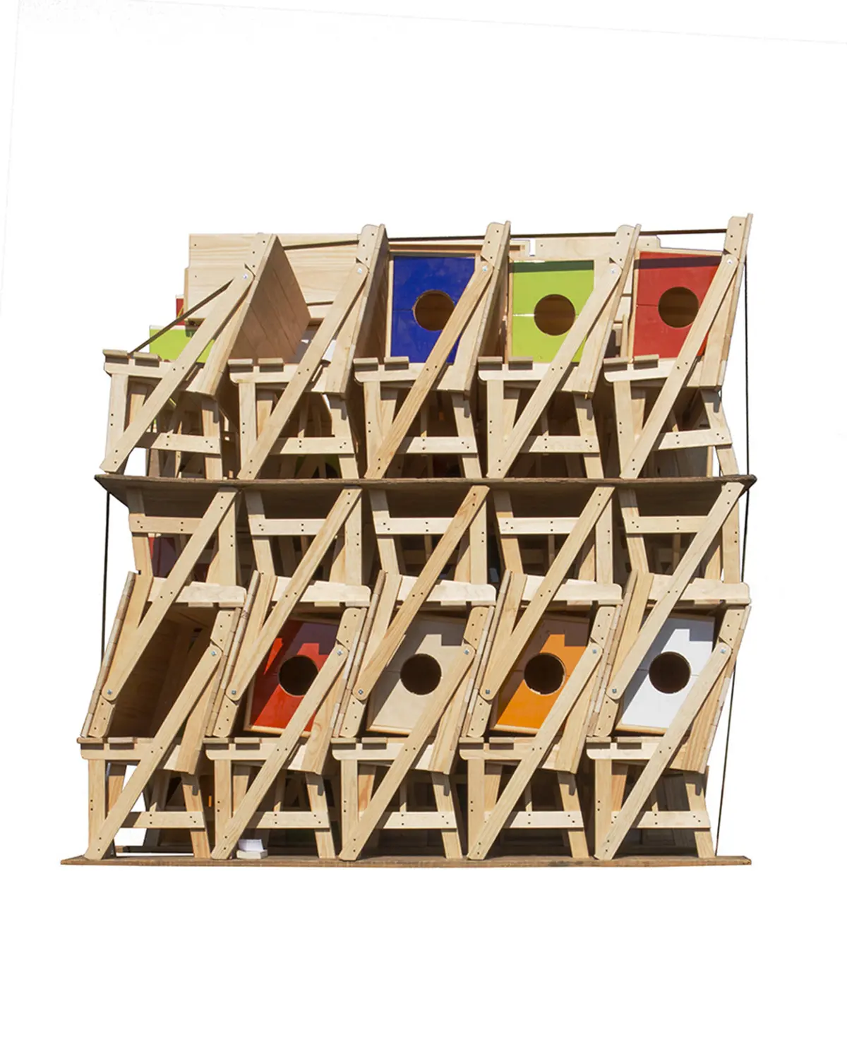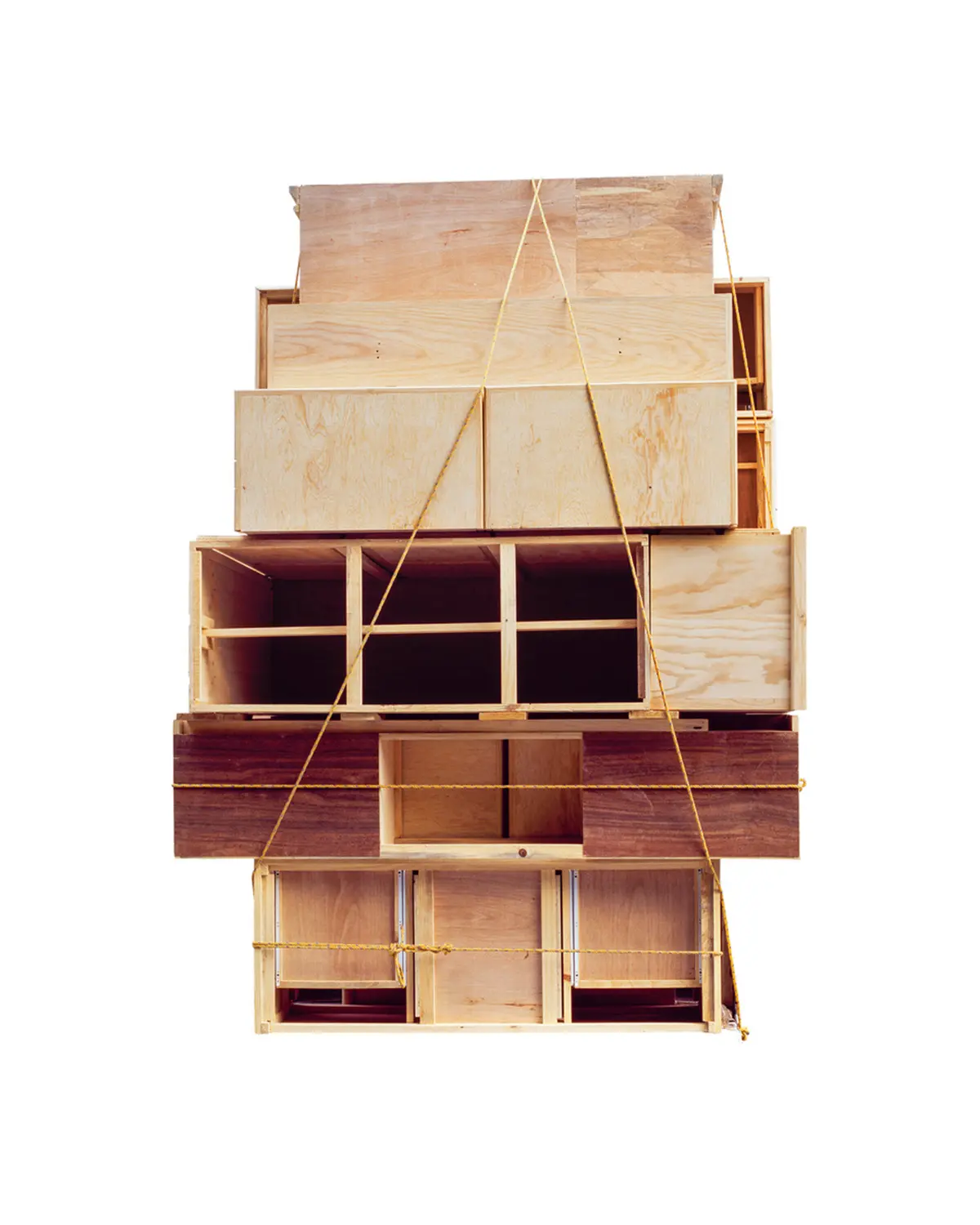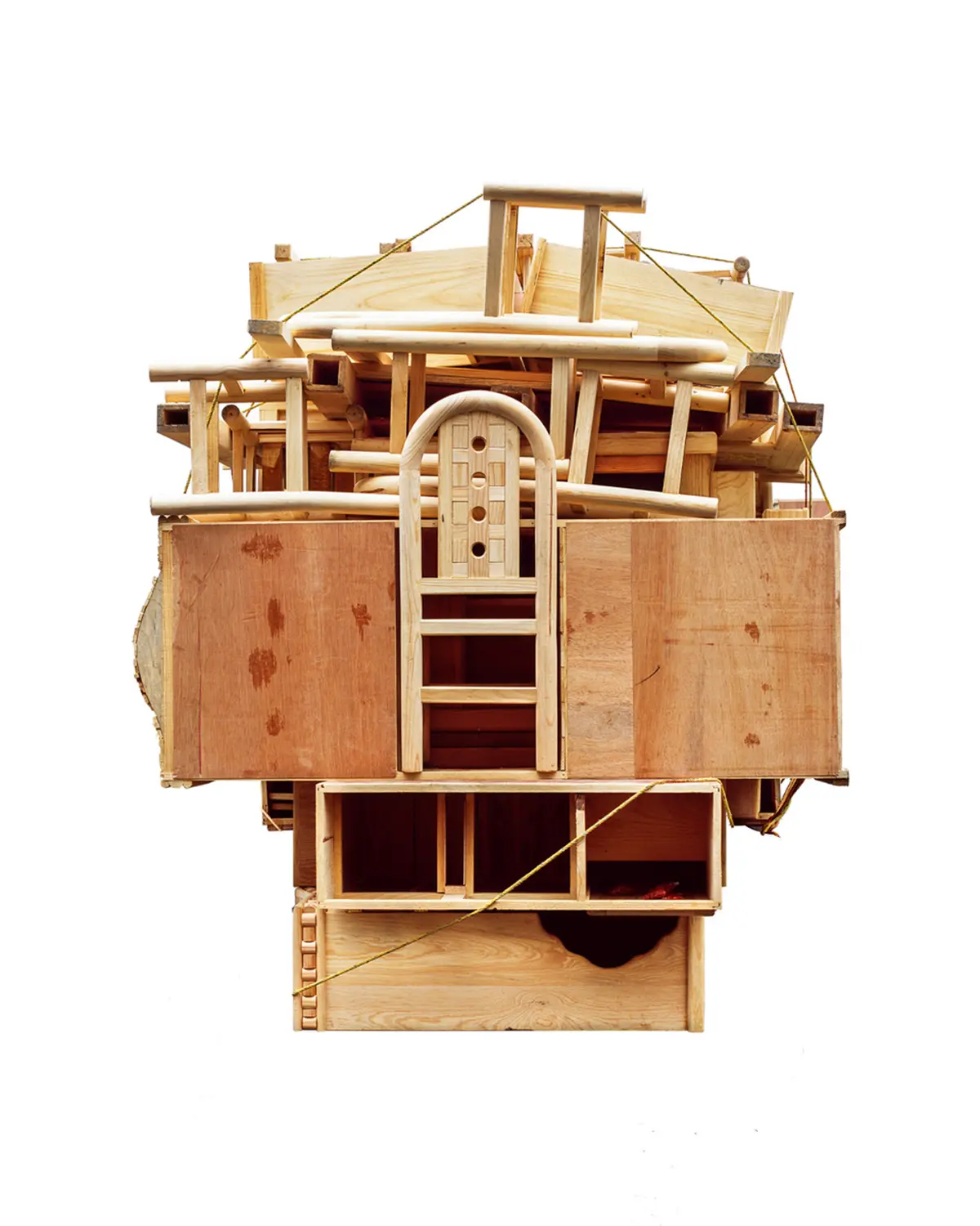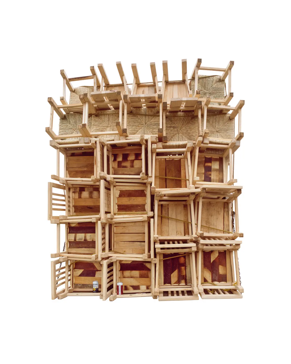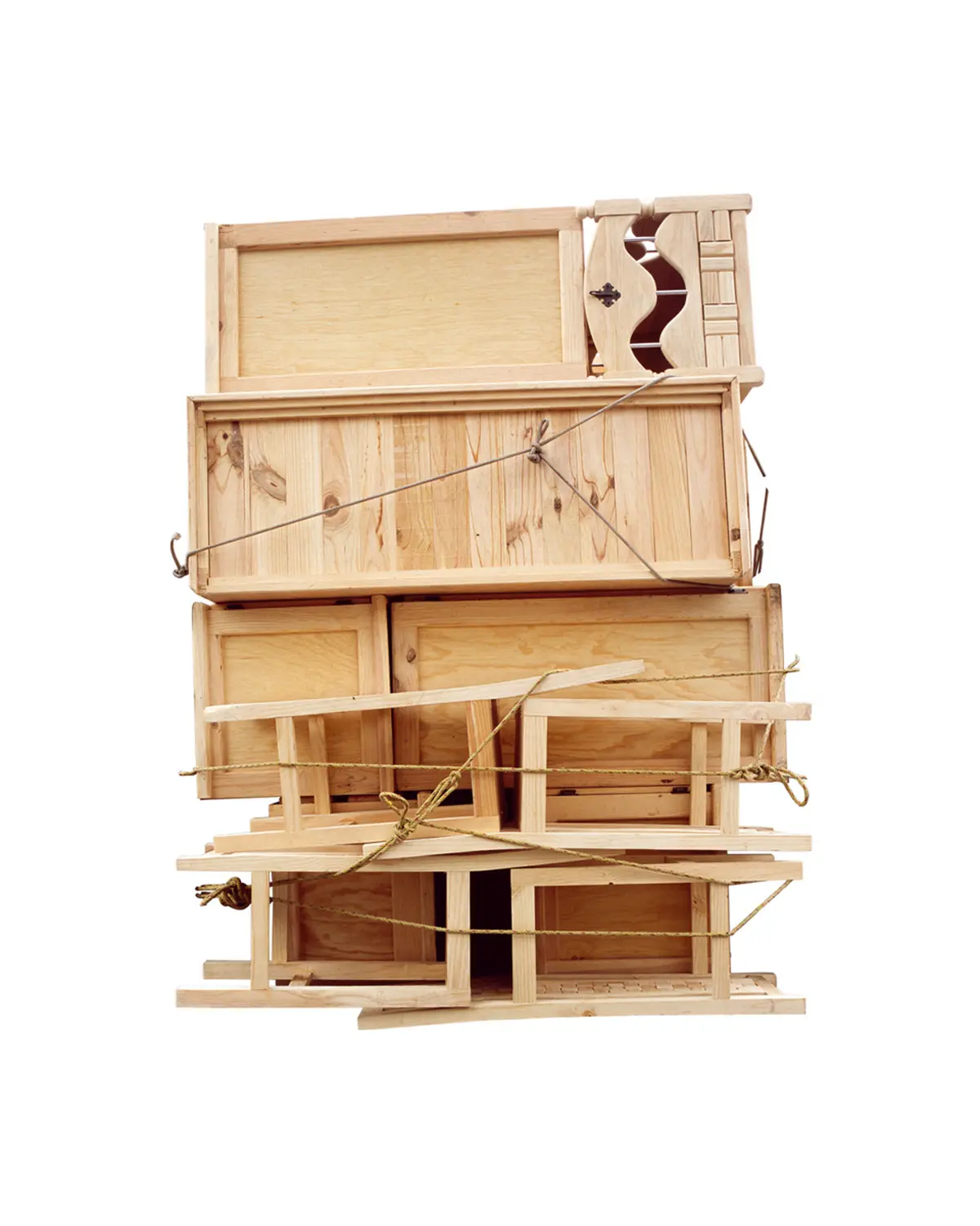 Ensamble significa ensamblar o juntar componentes separados. La serie entrelaza fotografías tomadas en un mercado de muebles en las afueras de la Ciudad de México. El punto de partida de la obra es una tipología de fotografías de la parte trasera de camiones llenos de muebles. Cada uno similar, pero sutilmente diferente del otro. Utilizando los muebles de este mercado, procedí a cortar y ensamblar las piezas para crear una serie de esculturas que fotografié en mi estudio. Estas esculturas se utilizan posteriormente para hacer los cianotipos, creando un ciclo infinito entre escultura y fotografía, imagen y objeto. El título hace referencia al proceso de desmontaje y montaje que implica la creación de los muebles y las obras escultóricas, así como de los fotogramas de cianotipo.