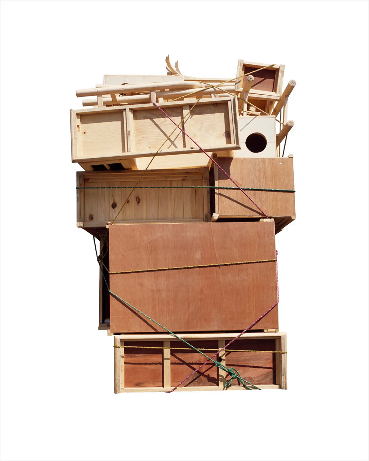Ensamble means “to assemble, or put together separate component parts. The series weaves together photographs taken at a furniture market in the outskirts of Mexico City. The starting point for the work is a typology of photographs of the backs of trucks stacked with pieces of furniture. Each one similar yet subtly different from the next. Using the pieces of furniture from this market, II then proceeded to cut and reassemble the parts to create a serie a sculpture with I photographed in my studio. These sculpture are then used to make the cyanotypes, creating and endless cycle between sculpture and photography, image and object. The title makes reference to the process of disassembling and re assembling involved in creating the furniture pieces and the sculptural works, as well as the cyanotype photograms.