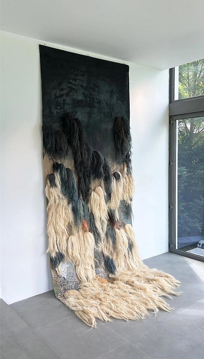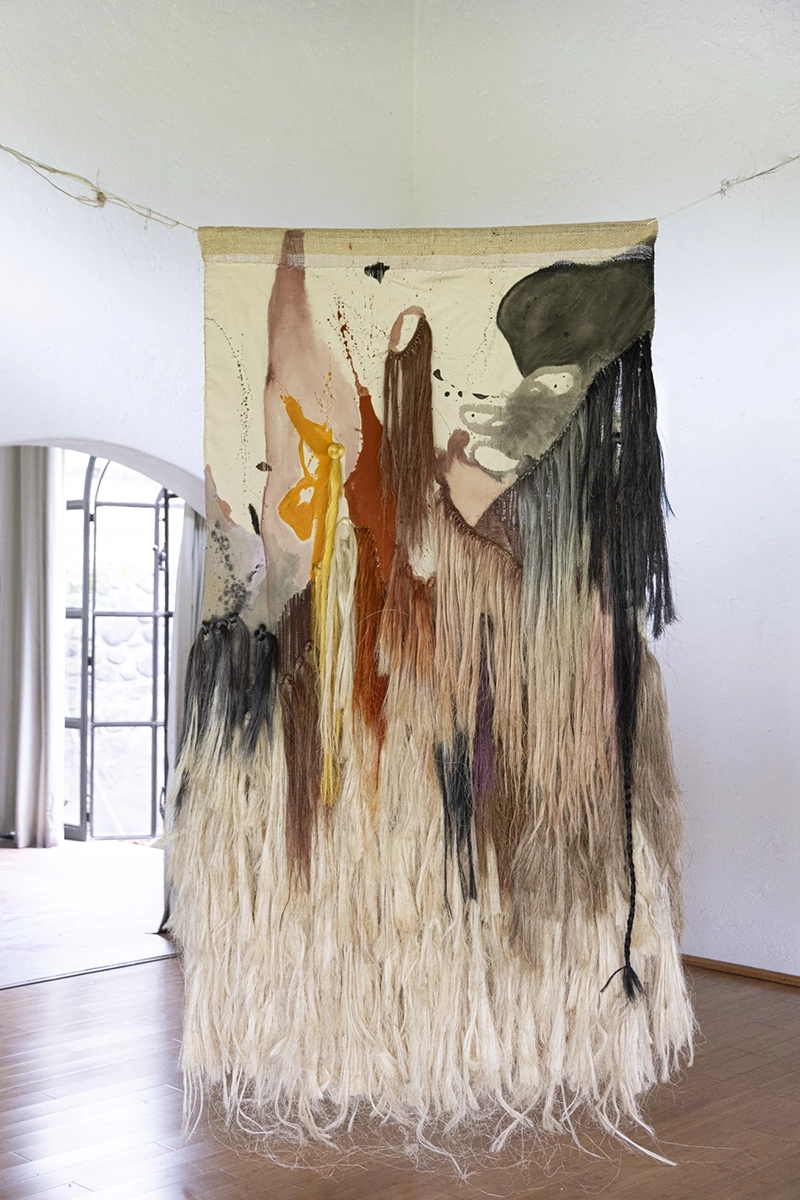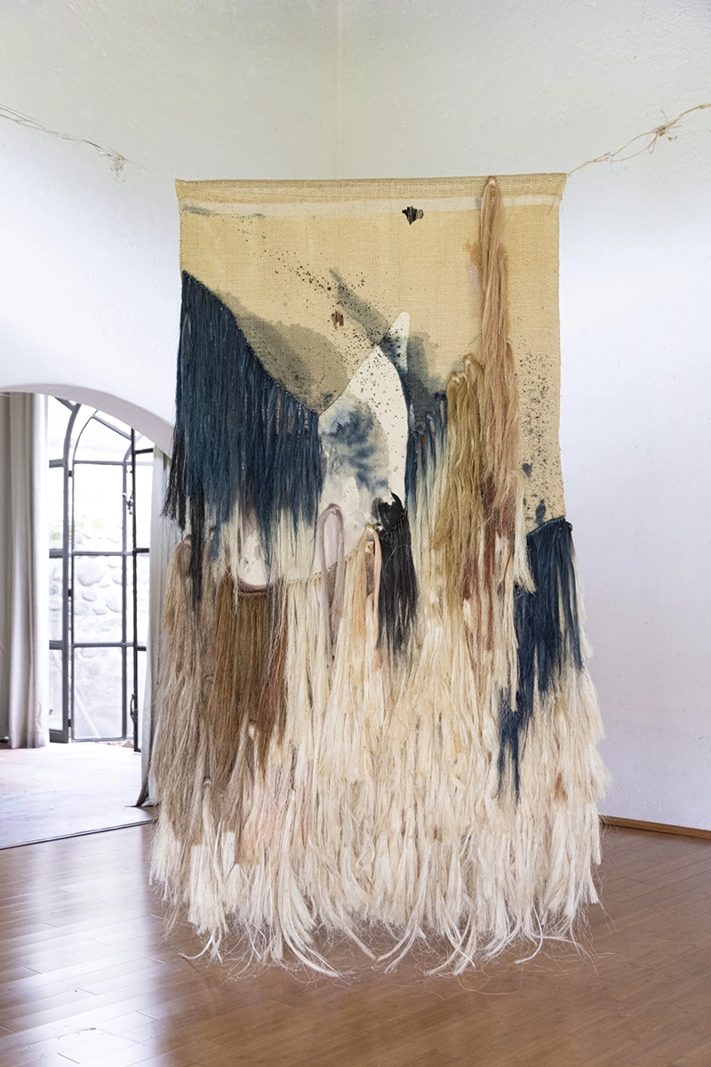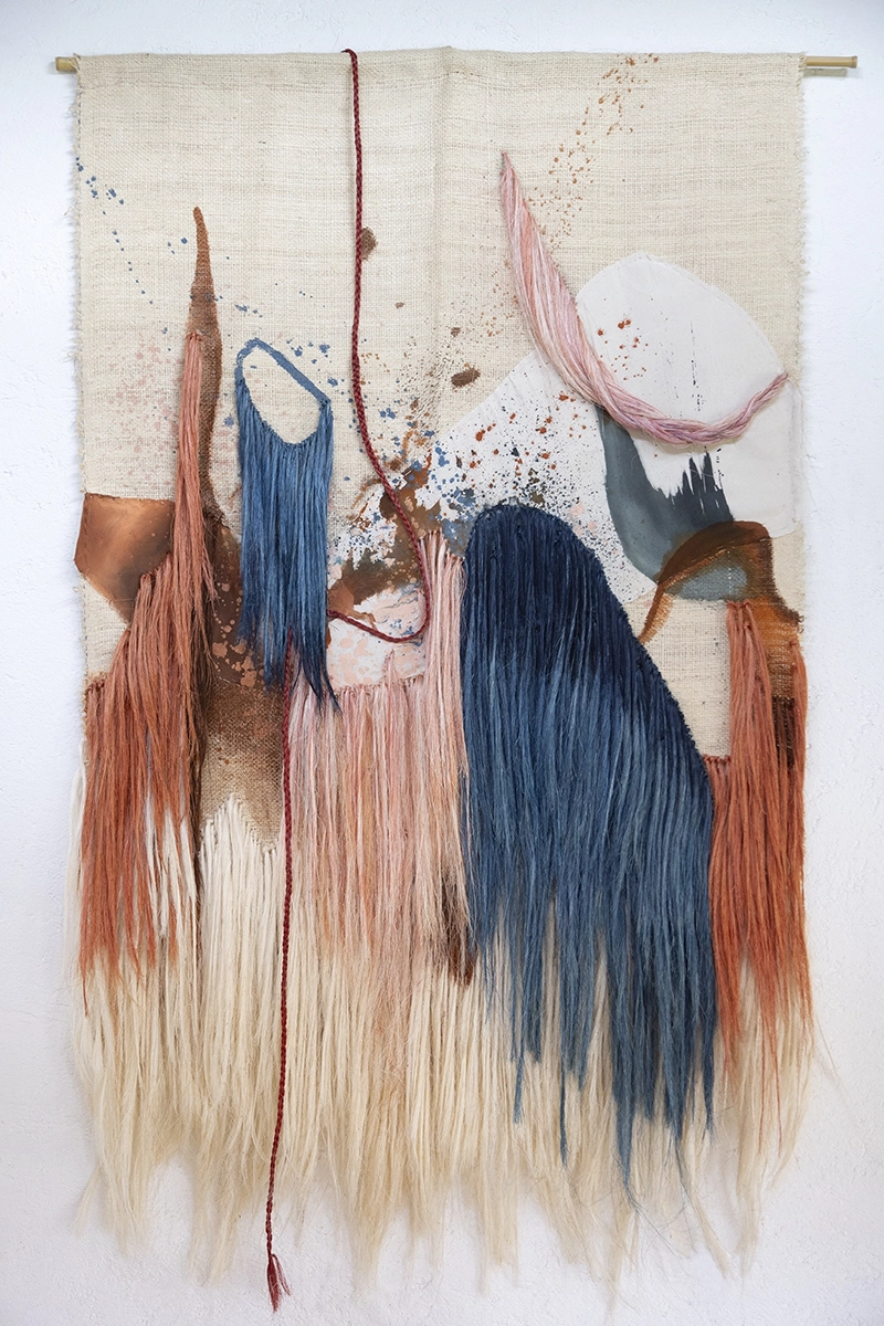 Born and raised in Mexico City, Beatriz Morales left her native country in 2001 to pursue largely autodidactic studies in painting and fashion design in Europe. Morales combines an investigative, abstract-expressionist approach with textile art, fibre art and conceptual components, often realized in monumental installations. As part of her practice, the artist incorporates traditional, pre-hispanic dyeing techniques, both in her work with plant fibers as well as when painting on canvases. Morales’ painting Wonderland II was presented at the Museum of Contemporary Art Rufino Tamayo Mexico City and Oaxaca as part of the Mexican Painting Biennial 2017. She made her major art fair debut shown at Zona Maco in 2018, followed by multiple appearances at Dallas Art Fair, Zona Maco, Art Karlsruhe as well as exhibitions in numerous galleries across Europe and North America. Beatriz Morales’ recent exhibitions include a major solo exhibition at Circle Culture Berlin and two museum shows at the Chancellery Museum in Mexico City and the Museum of Contemporary Art MACAY in Merida (which dedicated its main exhibition hall to a large scale installation by the artist), and a participation in the major, high-profile group exhibition “The King is Dead, Long Live the Queen” at Frieder Burda Museum, Baden Baden, Germany. Upcoming exhibitions include solo exhibitions at Praxis Gallery New York (opening on May 9, 2024) and Kunstverein Dresden, an intervention of the iconic Edith Farnsworth House by Mies van der Rohe in Plano Illinois, USA and a duo exhibition at Circle Culture, Berlin. Upon invitation by Mexican top restauranteuse Gabriela Cámara (Contramar), Morales created a monumental 3 x 8 meter agave fiber mural for Cámara’s new restaurant Caracol de Mar in Mexico City. Beatriz Morales published her first major monography “Color Archaeology” on Kerber Publishing in December 2021, available now in bookstores internationally. Her paintings and installations are held in institutional and private collections in Mexico, Germany, Austria, the Groeninghe Collection Belgium, Switzerland, France, Canada and the USA, and were featured in numerous print and online publications. Beatriz Morales lives and works in Berlin and Hidalgo, Mexico.
