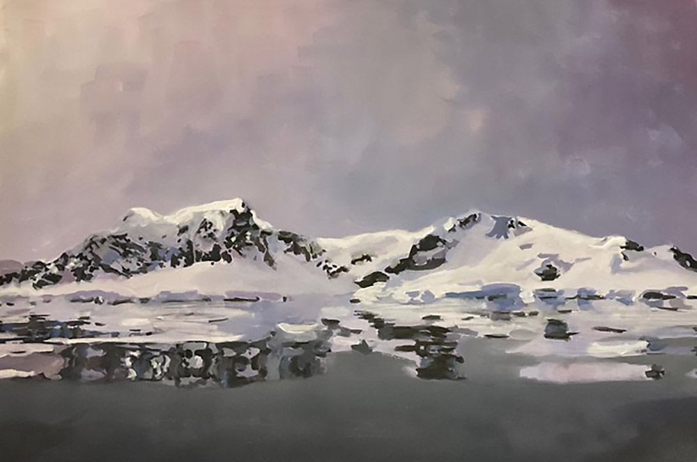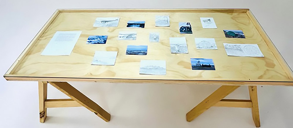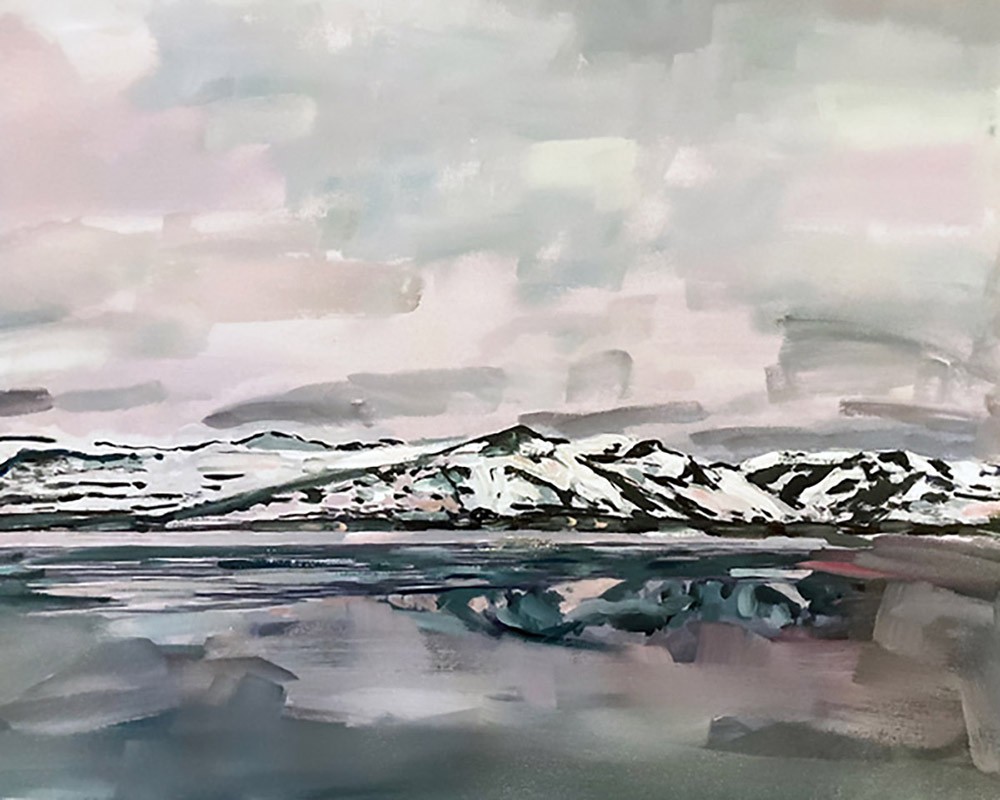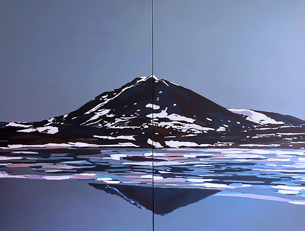 A volcano emerges from Salmon Lake or Nahwazuk in the Iñupiat language. Through his representation Valls tries to evoke the transition that this journey has brought him. The artist, who is generally linked to hyperrealist painting –although he does not define himself as a painter–, deconstructs through color and texture a quasi-photographic perception: a flat and immutable sky, small pictorial strokes that are superimposed as a constructive system in the one where the volcano emerges, silences that allude to the silence of the fog. This is an allegory of a vital sensation, a pictorial exercise in which, through the evasion of gestures and details, he managed to express the essence; thus his experience on this journey called Diomedes.