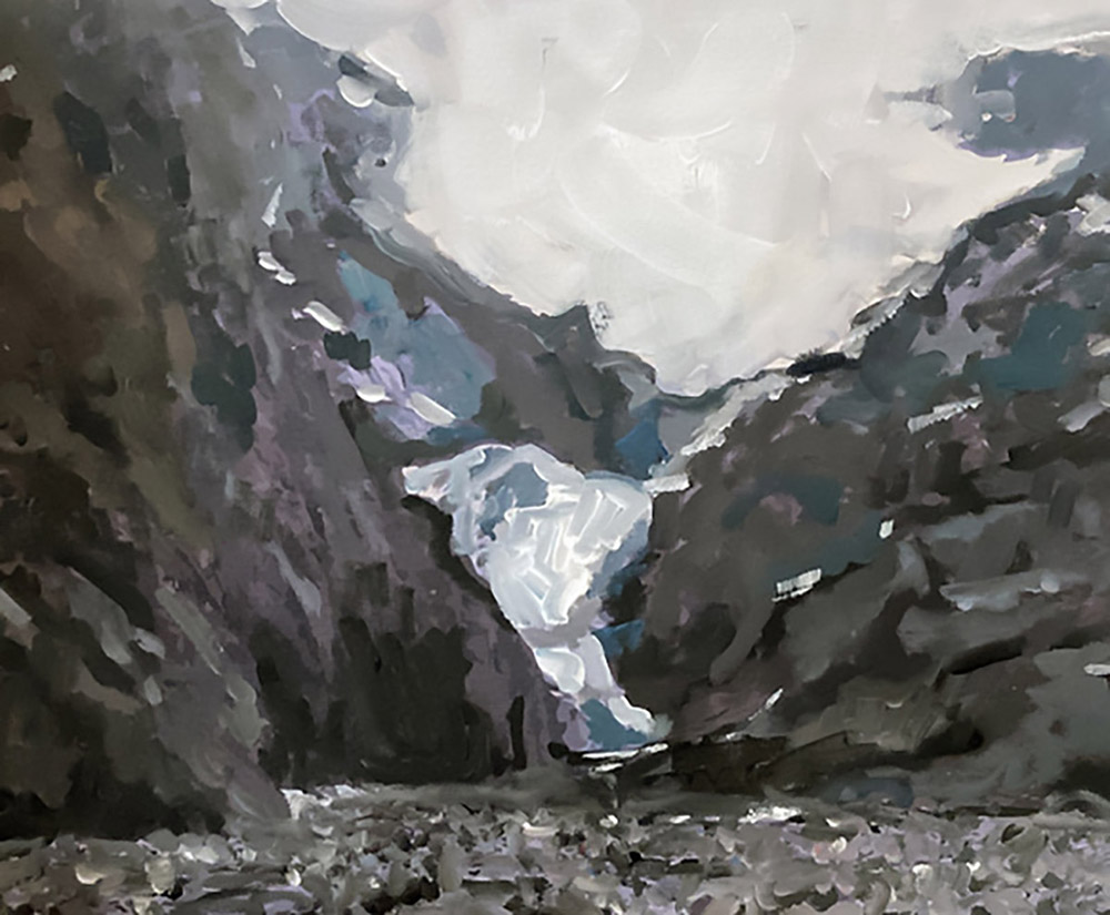 This series of photographs shows the artist’s transit through the Harding Ice Field in Alaska, where the Exit Glacier is derived, which is located in the Kenai Mountains. During his tour, Pierre Valls noticed the dichotomy of being present in the beauty of the Fjords National Park and at the same time witnessing the disappearance of the glacier, which according to data has been receding several centimeters in recent years. This case is not isolated, according to sources of scientific information, global warming is causing the melting of more than 49% of the glaciers in the world, the closest example is that of the Ayoloco glacier, located at the summit of the Iztaccíhuatl volcano, which was declared extinct in 2018. On this bittersweet journey Pierre was confronted with the first storm of the trip, his camera was damaged by freezing, fear, the cold and the uncertainty of survival invaded him, three bears, a mother and her two cubs accompanied his path, he thought immediately in his mother. That is why the voice that emerged from his head was that of Brigitte, with his melodic French he established a dialogue with her, kilometers away it is still his safe place, his ground floor and in whom he harbors his most intimate hopes. The format of the photographs responds not only to that need for introspection – do you remember that your camera was damaged? – these images were taken from the lens of your cell phone.