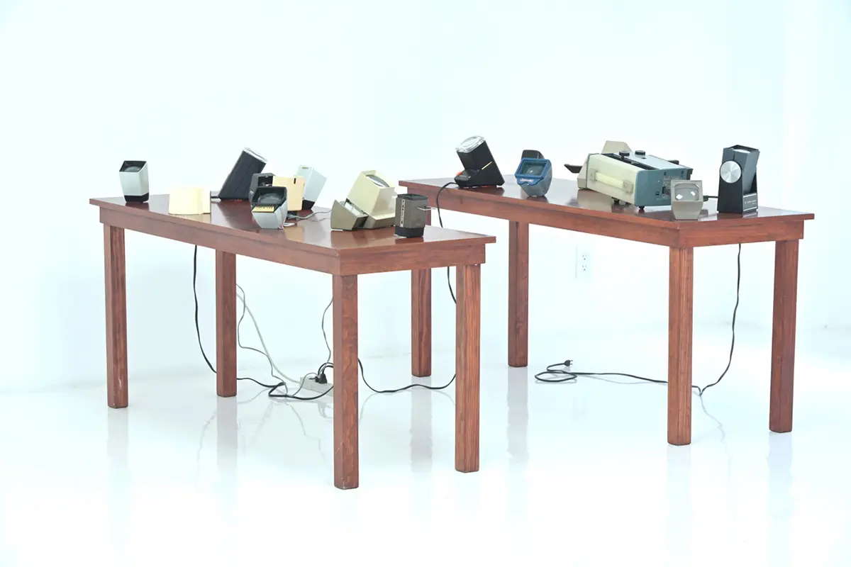 Al igual que con Real too Real. Ready mades, esta obra es un rescate de sonidos grabados en los años 80’s y 90’s. Las grabadoras de mini cassetes surgen en los años 80 como una tecnología compacta y barata para grabar memorandums, sesiones de trabajo de distintos tipos, pero también eventos distintos como bodas, o simplemente para cualquier tipo de ocurrencias como cantar una canción. Las mini grabadoras, al igual que las de carrete abierto, tienen diseños distintos, personalidad, individualidad, y a partir de su desaparición se han convertido en ready mades. De varias de las grabadoras se reproduce una obra sonora realizada a partir de fragmentos de la distintas grabaciones encontradas. Los minicassetes encontrados conforman también parte de esta instalación, colocados en la pared con alfileres entomológicos, utilizados para disecar insectos, como bichos raros en aras de extinción.